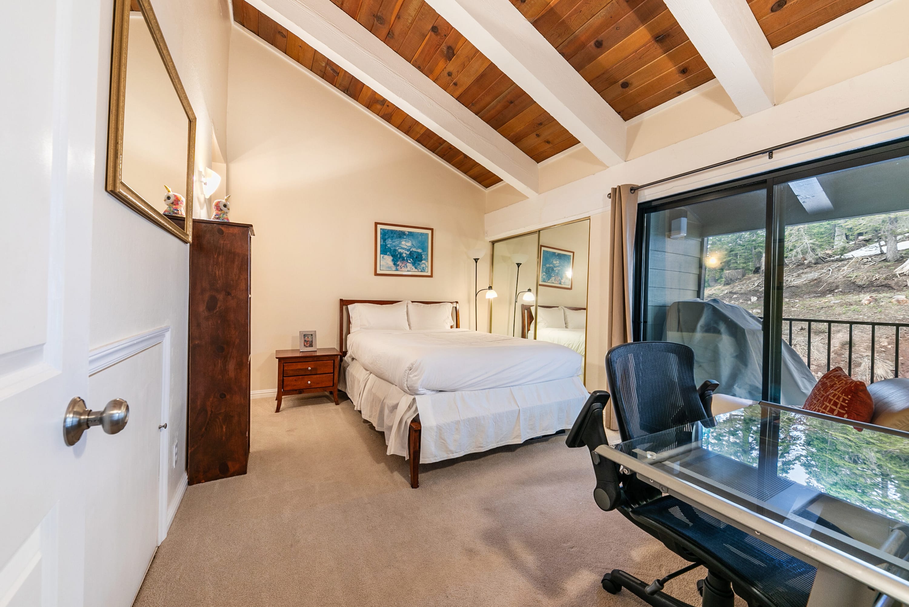 Set against the stunning backdrop of Alpine Valley, this cozy home places you in a peaceful forested setting less than a mile from the Alpine Base Area at Palisades, Tahoe. No need to worry about traffic; you're mere minutes from your front door to the slopes! Plus, with the Mountaineer shuttle offering free, on-demand rides throughout Olympic Valley and Alpine Meadows, getting around without a car is a breeze. Head over to the charming European-style village at Palisades Tahoe, less than 15 minutes away, where you will find a wide variety of restaurants, bars, boutiques, and seasonal festivals. During the summer months, enjoy a walk or bike ride on the Truckee River bike path, located 8 minutes from the home. With HWY 89 just minutes away, you can easily make day trips to many of the stunning surrounding areas. Tahoe City is less than a 15-minute drive away, offering many boutique shops, a wide variety of bars and restaurants, farmers' markets, live music, and a big sandy beach with a great park and lakeside walkway. With its easy access to ski resorts, bike paths, and beaches, this condo is a great home base for the ultimate Tahoe getaway any time of the year.