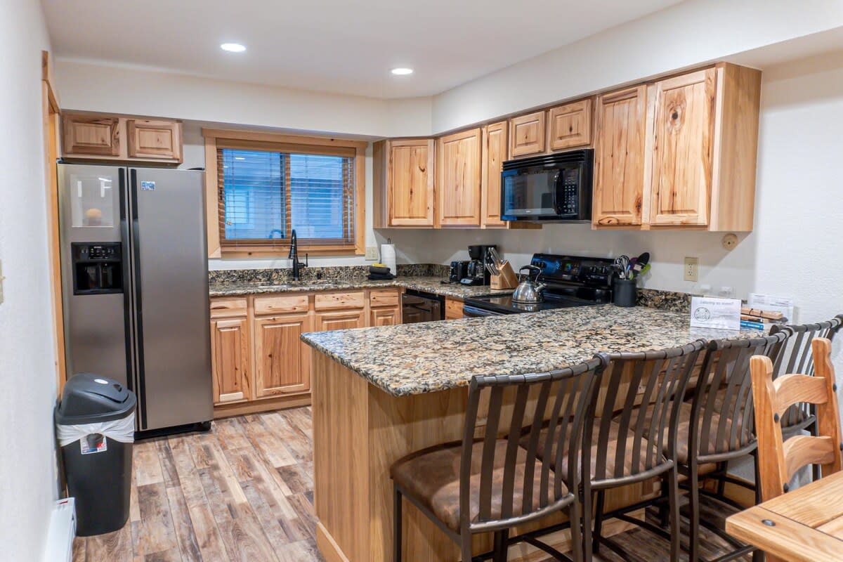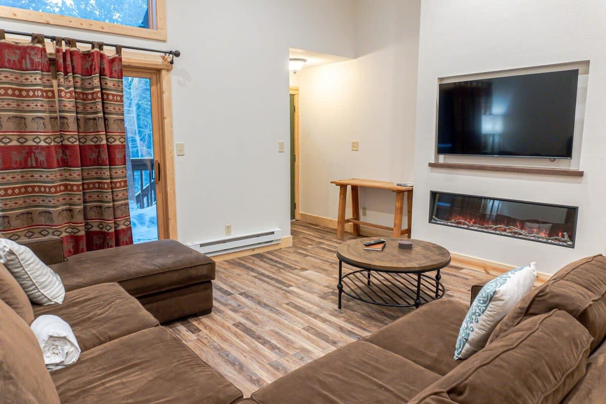 This 2-bedroom 2.5-bathroom Winter Point townhouse is beautifully decorated, spacious, and comfortable. The bedrooms are located upstairs and have similar layouts: a king size bed, twin over twin bunk beds, and an en suite bathroom with shower tubs. There is an outdoor patio off of one of the bedrooms with a lovely view of the mountains. The bedrooms are ideal for young families and larger groups and conveniently located on their own floor above the kitchen and living room. The main floor is a split level with the kitchen and half bathroom on one level and the living room and fireplace on the other. The kitchen has all of the amenities needed to make meals in the comfort of the home. There is plenty of seating for your group to enjoy each other's company while preparing and eating meals. The spacious kitchen table is ideal for sharing a meal at the end of a long day of adventure! The living room features a sectional sofa and a smart TV. There is a patio off of the living room to enjoy the outdoor mountain air. Breckenridge STR License Number:291250004