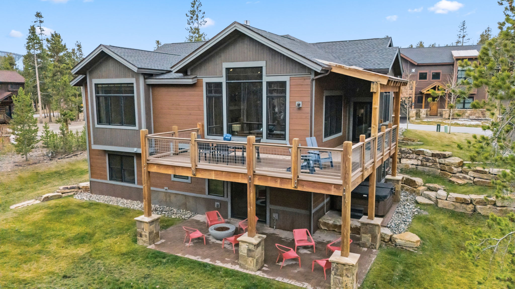 Location perks: The Lodge at Breckenridge (0.1 miles), BreckConnect Gondola (1.9 miles), Carter Park (1.9 miles), Breckenridge Ski Resort (2.1 miles), Main Street Station (2.5 miles) Interior — Kitchen (drip coffee maker, Keurig, Crockpot, blender, cooking utensils, tableware) — 2 Smart TVs (65" in main living room, 55" in lower level) with Roku — Gas fireplaces (2) — In-unit washer and dryer — Free WiFi (56 Mbps) — Radiant heat (portable fans provided) — 2,991 sq. ft. Exterior — Gas grill — Fire pit (gas, no wood needed) — Patio and balcony — Outdoor dining area (6-person seating) — On-site parking for 4 cars (2 in garage, 2 in driveway, curbside overflow allowed) Floor configuration Main floor: Kitchen, dining area, living room, 1 half bathroom, 1 bedroom (king bed, crib), 1 en-suite bathroom (steam shower) Lower floor: 2 bedrooms (1 king bed with en-suite, 1 queen bed with full bath), bunk room (2 bunk beds twin over full), 1 full bathroom (jack-and-jill), lounge room Breckenridge Business License No. [insert number.: STR21-01543