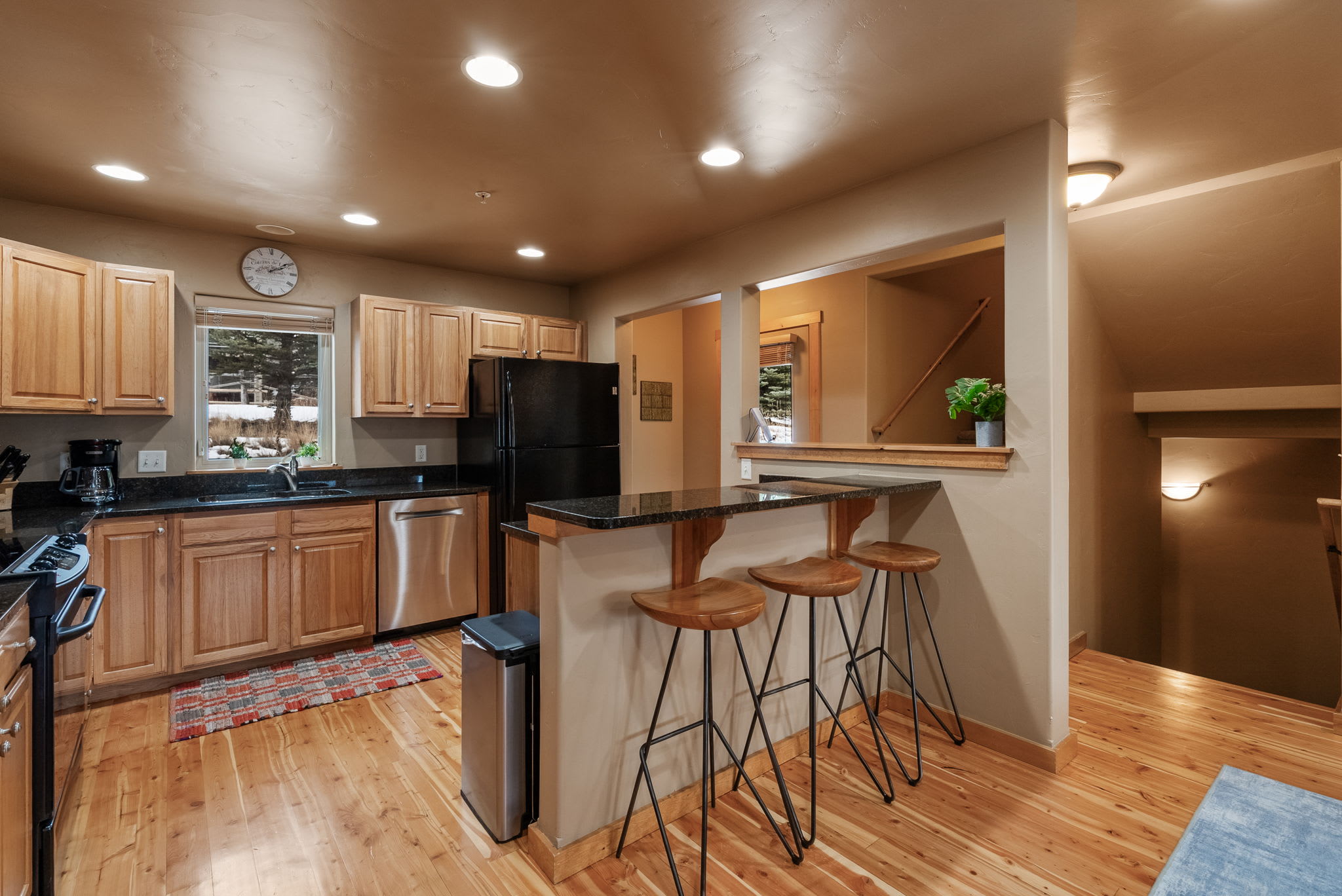Please keep in mind that if you plan to ski, you are responsible for verifying the ski resorts’ opening and closing dates. Please note that like most homes in the area, this home does not have A/C. 4-wheel drive or 2-wheel drive tires with snow chains may be necessary for safe travel to this property, even if it hasn’t snowed in a few days. There are 14 steps to enter the property. The garage height clearance is 93”.