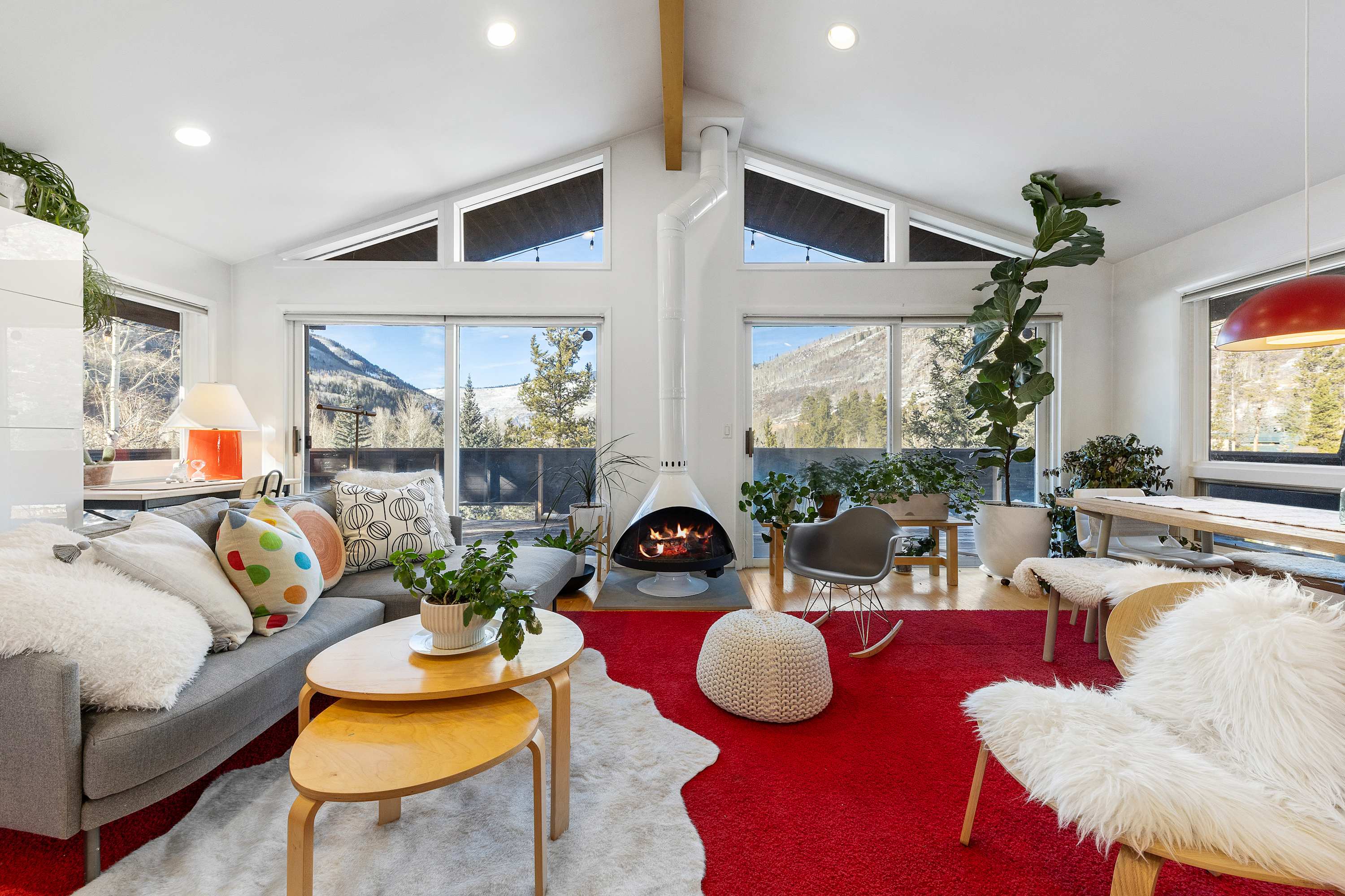Experience sweeping panoramic views of the Rockies & Gore Creek from this chic top floor vacation destination. “Apres All Day” is an elevated apres-ski/summer-escape/fall-foliage chalet. The retro gas fireplace, wrap porch, sumptuous beds & 2 modern bathrooms all give a wink to Lux. Prepare meals in the well stocked kitchen or BBQ on the view filled deck. This quiet & private mountain retreat, near hiking, skiing, golf, tennis, biking trails, yoga and pool, offers a refreshing Alpine lifestyle.