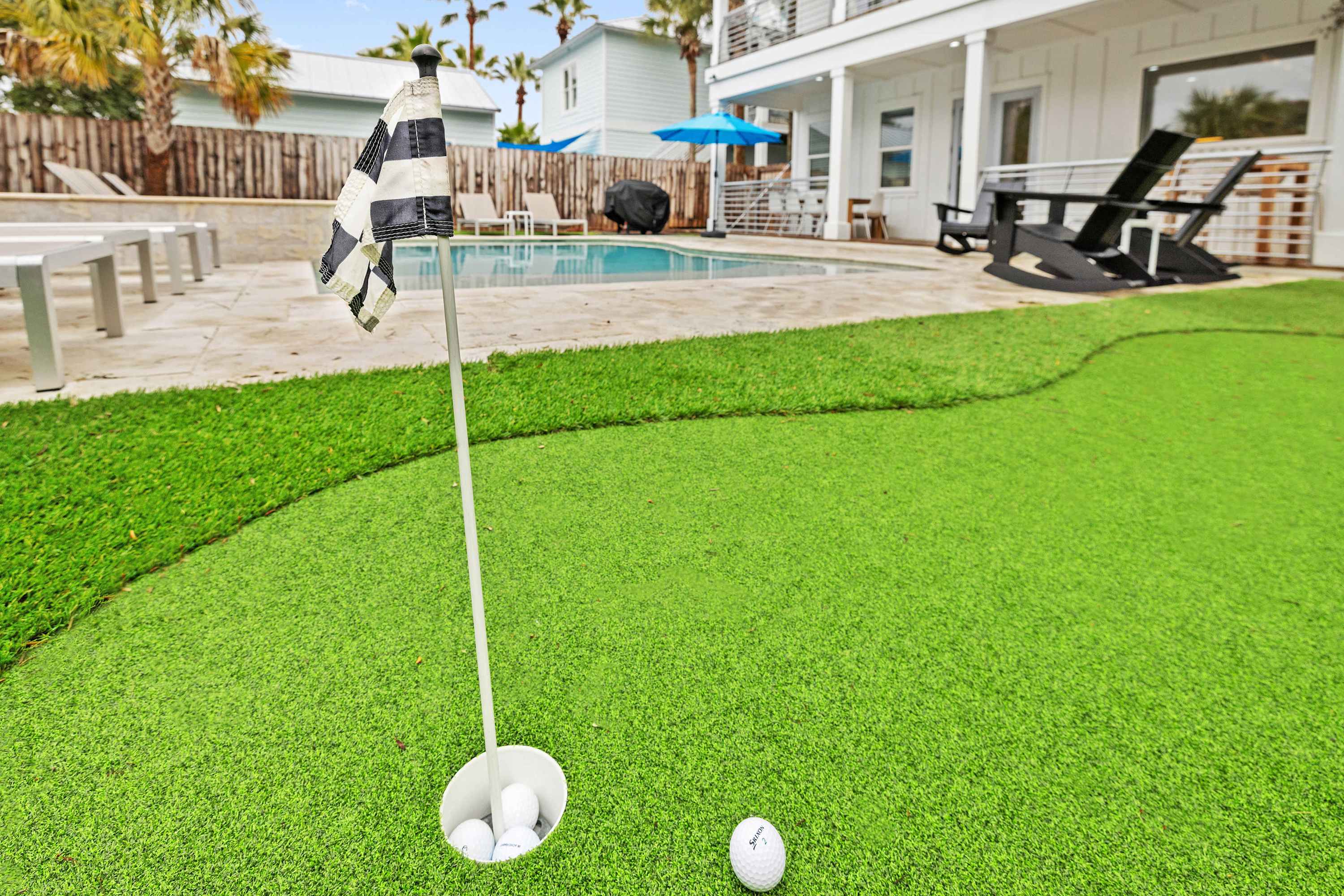 Location perks: Destin Commons Shopping Center (1.6 miles), Henderson Beach State Park (2.8 miles), Big Kahuna’s Water Park (4.2 miles), Silver Sands Premium Outlets (4.6 miles), Destin Harbor Boardwalk (6.5 miles), HarborWalk Village (6.4 miles) Interior: — Kitchen (2 Viking refrigerators, 7-burner stove/oven, Keurig with drip coffee maker, toaster oven, blender, cooking utensils, tableware) — 11 Smart TVs with advanced cable (85” in game room) — Free WiFi — 2 wet bars — Central heat and A/C — Game room (ping pong table, dart board, wall-mounted mini hoop, arcade games and dedicated workspace) — 5039 sq. ft. Exterior: — Private pool (heat available for $75/day, please inquire first) — Gas grill — Mini golf course — Patio with seating — 2 balconies — On-site parking for 6 cars in the driveway, no street parking — Rooftop deck accessible via a spiral staircase from the third-level balcony — Security camera on front porch Optional luxe add-on services (additional fees, please contact host to arrange): — Airport transfer — Chef/bartender — Grocery pre-stocking — Mid-stay clean Floor Configuration: Main floor: Living room 1, kitchen, dining area, bedroom 1 (king bed), bedroom 2 (king bed), 2 en-suite bathrooms, 1 half bathroom Second floor: Living room 2, bedroom 3 (king bed), bedroom 4 (king bed), bedroom 5 (king bed), bedroom 6 (full-over-queen bunk bed), 4 en-suite bathrooms Third floor: Game room, bedrooms 7 (king bed), 1 Jack-and-Jill bathroom (connecting bedroom 7 and game room), bedroom 8 (2 full-over-full bunk beds), 1 en-suite bathroom