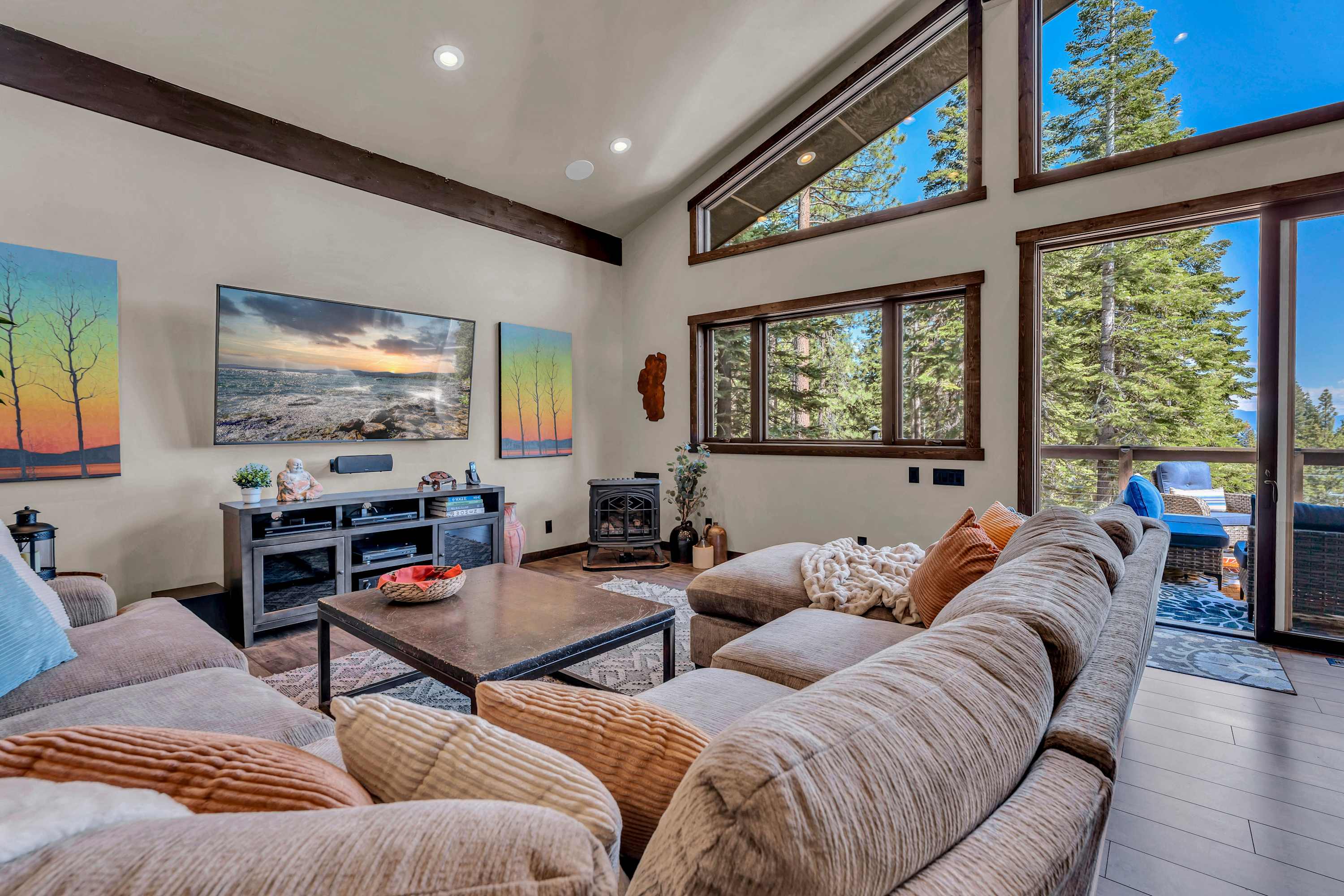 Nestled in North Lake Tahoe, this Agate Bay vacation rental combines space and charm with modern comforts. Enjoy the chef’s dream kitchen, filtered lake view deck, gas fireplace, reliable WiFi, and stand-up arcade. With nearby trails, walking distance to the lake, restaurants,miniature golf and year-round activities, it’s a perfect base for adventure and relaxation.