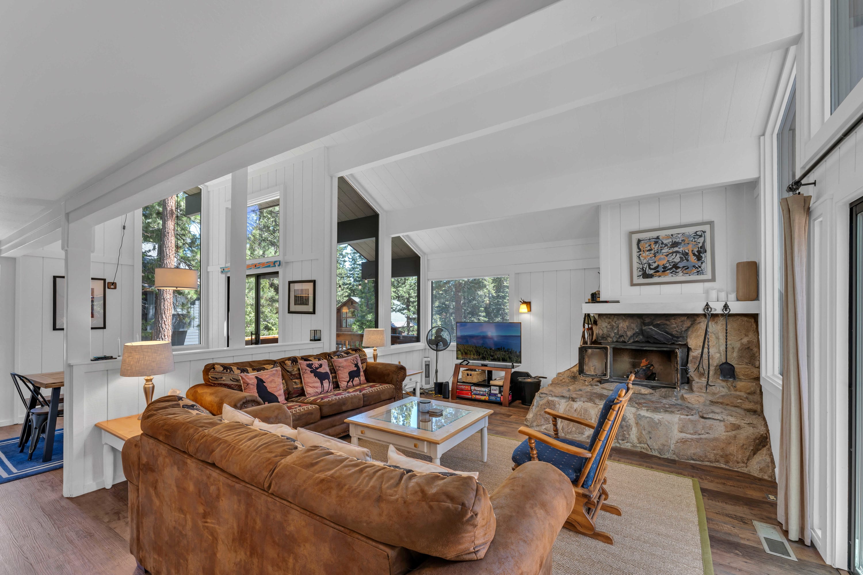 This bright 3-bedroom home is filled with rustic mountain charm, offering a comfortable home base for all your Tahoe adventures. Located in a serene forested area, the home features an airy layout with soaring ceilings and windows all around, two decks to enjoy the great outdoors, and a well-equipped kitchen for all your cooking needs. Conveniently situated between the town of Kings Beach and Northstar Ski Resort, you are in the best location for year-round fun.