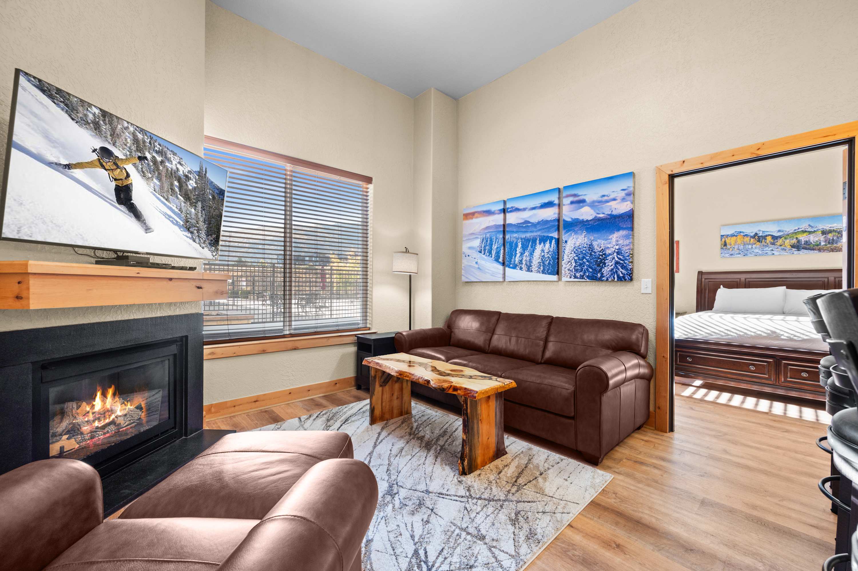 Location perks: Park City Mountain Ski Lift (0.5 miles), Main Street (4.5 miles), Utah Olympic Park (4.8 miles), Deer Valley Resort (6.0 miles), Jordanelle State Park (11.5 miles) Interior: - Kitchen (drip coffee maker, blender, kettle, cooking utensils, tableware) - Kitchenette in bedroom (no sink or hot plate) - Gas fireplace - Free WiFi (18.8 Mbps) - Two 50” Smart TVs with cable - Washer and dryer - Building-controlled central heat and A/C - 813 sq. ft. Exterior/Community: - 1 first-come, first-served parking space in shared garage, oversized vehicles can be parked outside (additional fee, must be pre-arranged with LocalVR) - Outdoor hot tubs and pool - Sauna - Fitness center - Patio, fire pit, and gas grill - Game room with arcade, pool table, foosball table, and projector - Clubhouse with kitchen and lounge space - Bistro’s Deli and Switchback Sports on-site (ski/bike rentals and valet) With a queen pull-out bed and a Super Sleeper mattress topper in the living room and a king bed in the private bedroom, this convenient getaway can house a small family or friend group. The full kitchen in the living room, kitchenette in the private bedroom, and 2 full bathrooms provide guests privacy and space to spread out. When you’re not soaking in the community hot tub, check out the community game room or dine on-site at Bistro’s Deli. If you are in need of ski and snowboard rentals, you can find a Switchback Sports location in the Bearclaw room at the Silverado Lodge, conveniently located off the lobby. They offer rentals and even provide ski valet services, so you don't have to carry your bulky skis and snowboards up to your room. Additionally, they will also be offering bike rentals during the summer season.