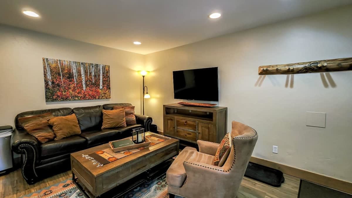 Located on the first floor, all brand new! The sofa bed is a queen size in the common area. Please note that like most homes in Breckenridge, we do not have A/C. Breckenridge STR License Number: 40182