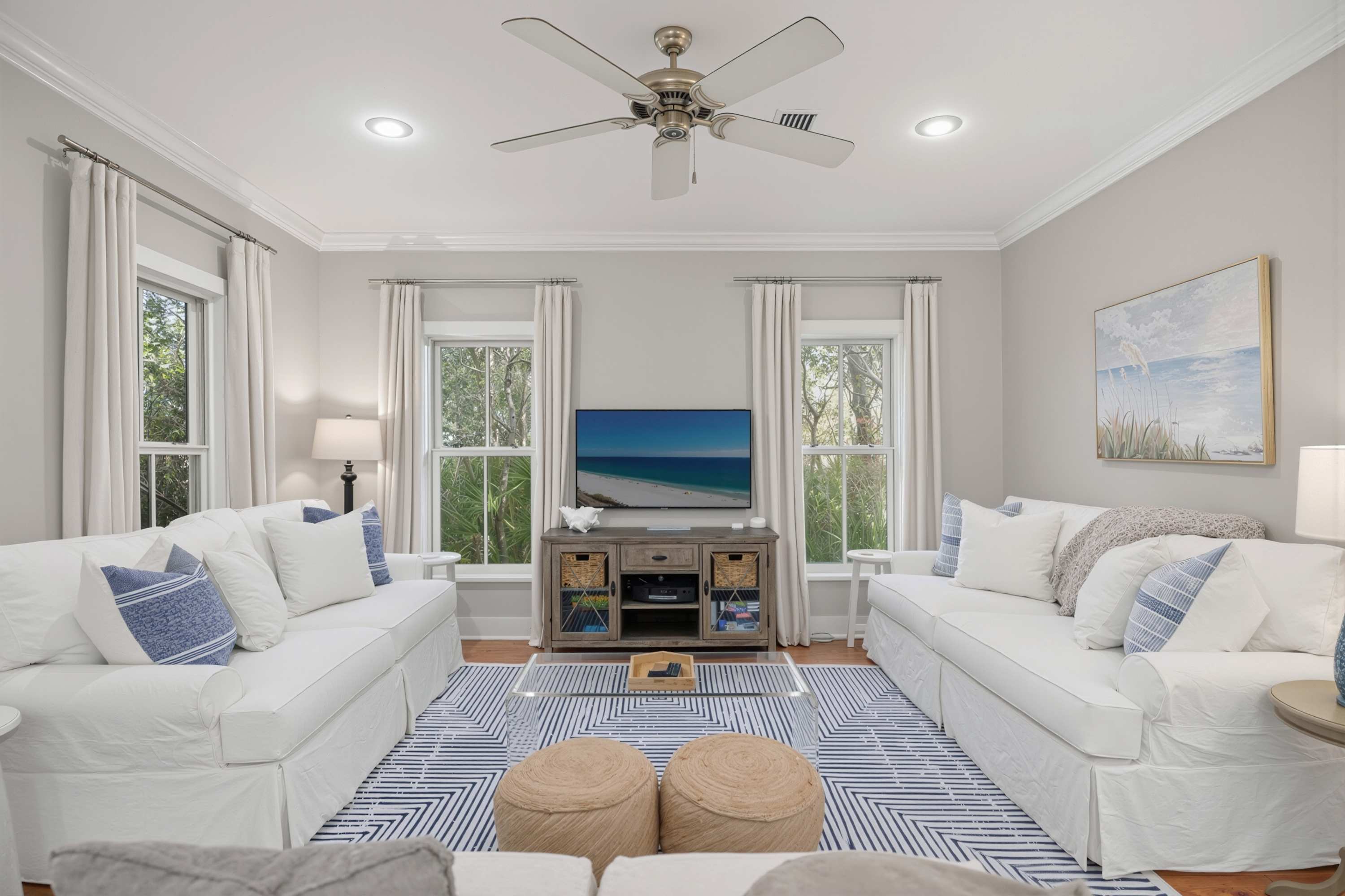 Driftwood Place has recently undergone some significant improvements which have included a new master suite with sitting room/office space, morning kitchen and a complete renovation of all bathrooms! Nestled in the tranquil community of Magnolia Cottages by the Sea, Driftwood Place offers an ideal retreat for those seeking peace, relaxation, and a place to reset. Located just off scenic Highway 30A, this serene beach house is a short, scenic walk to deeded beach access and one block from the heated (winter-spring) community pool. Designed to sleep up to 8 guests, Driftwood Place combines spaciousness with a cozy charm, featuring an open-concept living, dining, and kitchen area perfect for gathering with loved ones. Unwind in the newly added master suite, a true haven that includes a private sitting area, work desk (for those who need a quiet corner to stay connected), and a morning kitchen for the perfect start to each day. Each of the three bathrooms has been tastefully renovated with soothing, modern finishes, including fresh tile, glass shower enclosures, and sleek chrome fixtures. Start your mornings on the large screened porch, breathing in the ocean air with a cup of coffee, or end your evenings under the stars. Driftwood Place provides two bicycles, a charcoal grill, and beach essentials, including chairs, a wagon, and beach toys for effortless days by the shore. When the spirit of exploration calls, step out onto the 18-mile Timpoochee Trail, where you can walk, bike, or jog along 30A, discovering charming communities, local shops, and inviting restaurants. Whether you’re here to unwind, reset, or reconnect, DRIFTWOOD PLACE is your peaceful home away from home. Come find your quiet space on 30A. TRANSPORTATION - Biking is a popular mode of transportation! This home has 2 bikes for your use. Should you require more during your stay, a discount code to a local bike shop will be provided with your arrival information. HELPFUL NEIGHBORHOOD INFORMATION - Large heated (Winter months) resort style pool - Easy walk to beach access - Easy walk to Timpoochee Trail BEACH ACCESS/SERVICE: - There is deeded beach access directly across from the neighborhood. - In order to sit near the access, you must rent a "set" (2 chairs and an umbrella) otherwise you may use the access and walk 2 minutes to the right or 4 minutes to the left to the public access. - Beach Service is provided by two local vendors; information provided upon request SLEEPING ARRANGEMENTS (SLEEPS 8) - Primary Suite - 2nd Floor: King bed, NEW private bathroom with walk-in shower and sitting area with morning kitchen - King Bedroom - 1st floor: King bed, NEW private bathroom with walk-in shower - Bunk Room - 1st floor: 2 sets of twin-over-twin bunks, New bathroom with walk-in shower FEATURES: - New primary suite and bathrooms - 3 Bedroom/3 Bathroom Cottage- Sleeps 8 - 2 Adult Bikes - Work space - Private large screened porch off living/dining area - Full Sized Washer Dryer - Fully Appointed Kitchen - Full Size - appliances - Charcoal Grill - Complimentary Wifi - Large HEATED (Winter) Community Pool only steps away - Parking for 2 cars in driveway - Close Proximity to the beach - neighborhood is directly across 30A from beach access - 18 Mile Bike Path along 30A - Close to The Big Chill, Rosemary Beach, Alys Beach and Seaside - The outdoor shed houses amenities for your use - beach chairs, wagons, toys and a cooler.