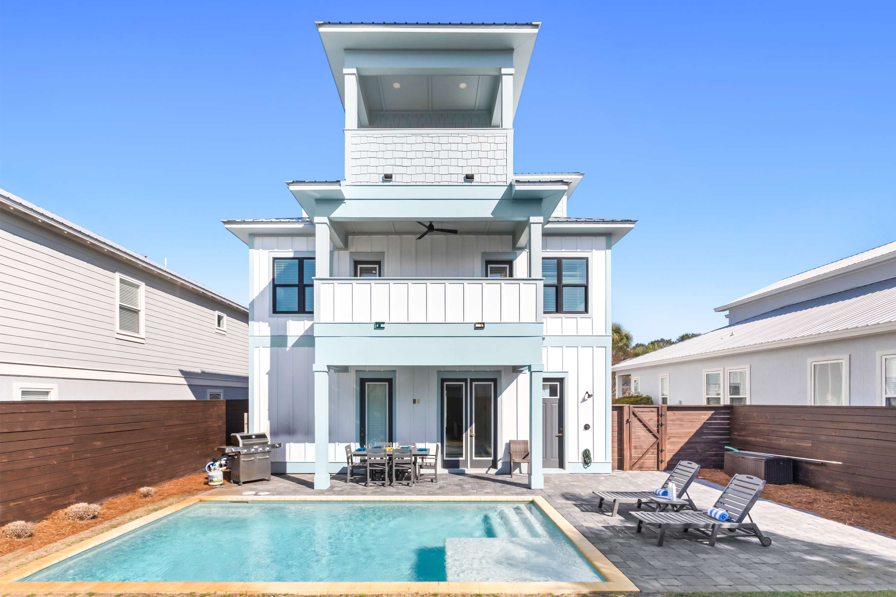 Redefine your Florida getaway at our stunning vacation rental, where luxury meets leisure across 3 meticulously designed levels. This premier residence features 7 bedrooms with all en-suite bathrooms, including a private backyard oasis complete with a sparkling pool, and a gas grill for al fresco dining. Inside, enjoy the convenience of 9 Smart TVs, high-speed WiFi, and an open-concept living area perfect for large gatherings. Located near world-class shopping and pristine beaches, our property provides the ultimate sanctuary for guests seeking a refined and memorable Emerald Coast experience.