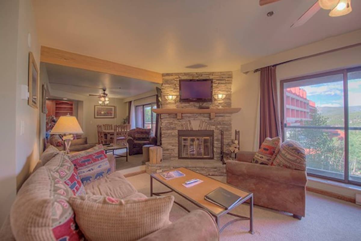 Cozy up and get ready for a rejuvenating night's sleep within this 700+ square foot space making you feel right at home! You'll find an enclosed bedroom with a pull-out sofa in the living room, comfortably sleeping 4 people. The living room opens to a deck with incredible views, perfect for a morning cup of coffee! Even though you have access to many great restaurants, you have the luxury to dine-in utilizing a full-size kitchen with all of the appliances needed to whip up a tasty meal. The big dining table is perfect for playing cards or games with guests! You'll find a wood burning fireplace and balcony in the unit, and you'll be within a close distance to all onsite amenities. You'll love the swimming or lounging pools, including one outdoor and one indoor/outdoor. You'll especially love them on a clear night with a sky full of stars! Kids especially will love playing mini-golf or arcade games in the games room at Beaver Run! Please note that like most homes in Breckenridge, we do not have A/C. Breckenridge STR License Number: 45496