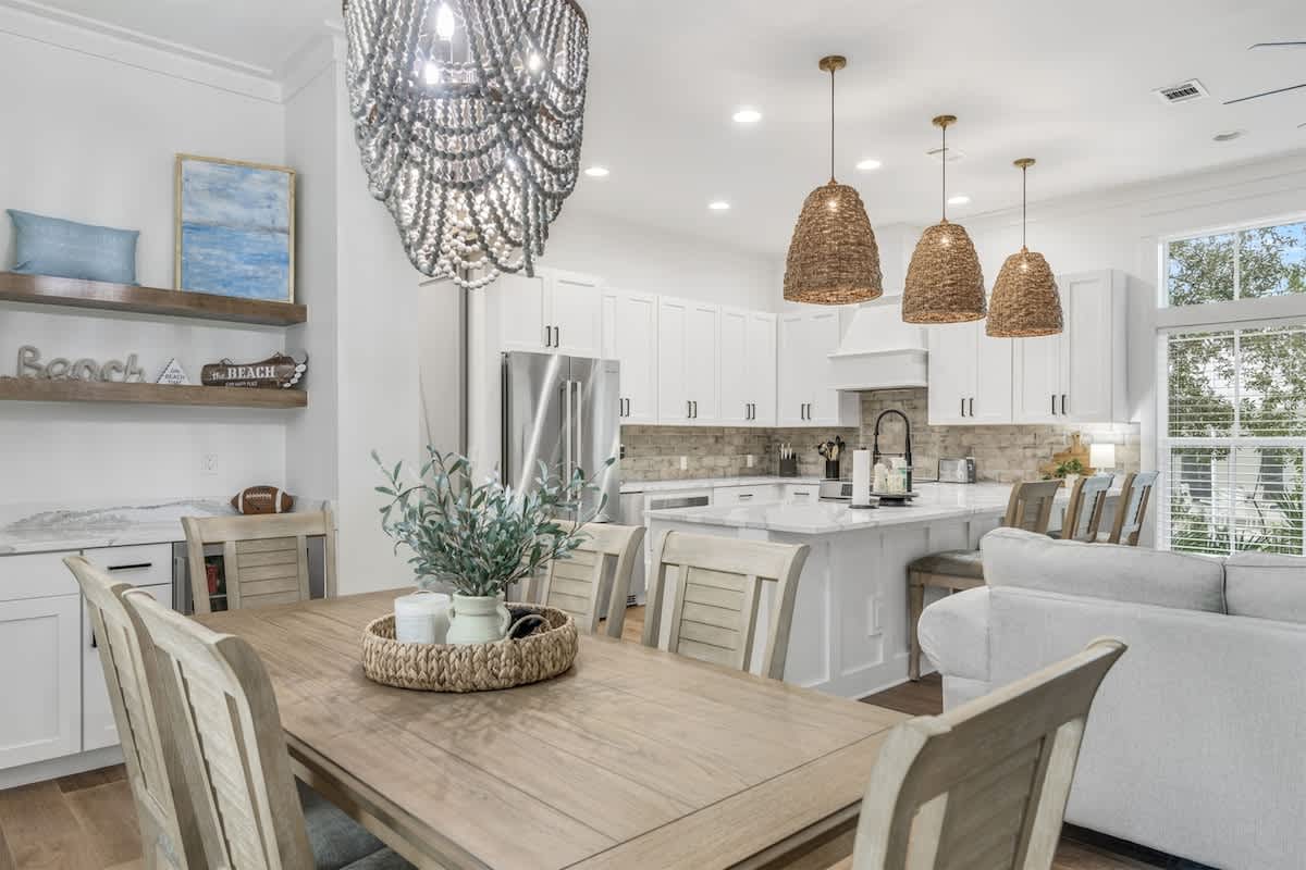 Make lasting memories with family and friends and your pet at Shore Me The Way! This newly constructed and beautifully decorated, 4BR/4.5BA home is exclusively located at the end of a quiet side street in coveted Magnolia Cottages by the Sea. Â This spacious, well-positioned home is tucked away between Rosemary Beach and The Big Chill, making it convenient to several boutiques, local eateries and live entertainment. Shore Me The Way also boasts an easy stroll (5 minutes) to the deeded beach access. Shore Me The Way has everything one could possibly need for a memorable stay on 30A! Sleep 10 guests comfortably with 4 king bedrooms each with an ensuite bathroom and an adorable bunk nook for your younger companions! Cocktails or coffee? The choice is yours to enjoy on the screened-in porch, positioned in the back of the home for a quiet, private retreat. Ready to explore? Walk, run or bike along the 18 mile Timpochee Trail and explore the many stores, restaurants and state parks that 30A has to offer! Â You will love your stay at Shore Me The Way.. to 30A! HELPFUL NEIGHBORHOOD INFORMATION - Large heated (Winter months depending on ambient nightly temp) neighborhood pool - Easy walk to beach access TRANSPORTATION - Bikes are popular on 30A! 6 bikes are included with this property. BEACH ACCESS/SERVICE: - There is deeded beach access directly across from the neighborhood. - In order to sit near the access, you must rent a "set" (2 chairs and an umbrella) otherwise you may use the access and walk 2 minutes to the right or 4 minutes to the left to the public access. - Beach Service is provided by a local vendor; information provided upon request SLEEPING ARRANGEMENTS (SLEEPS 10) - Primary Suite - 1st Floor: King bed, private bathroom, Walk-in shower - King Bedroom - 2nd floor: King bed, private bathroom, Â Walk-in Shower - King Bedroom - 2nd floor: King Bed, private bathroom, tub/shower combo - King Bedroom - 2nd floor: King bed, private bathroom, Walk-in shower - Bunk Nook - 1st floor; twin/twin bunk beds FEATURES: - 4 Bedroom/4.5 Bathroom Cottage - Sleeps 10 - Private screened-in porch in rear of home - Full Sized Washer Dryer - Fully Appointed Kitchen - Full Size Refrigerator - Full Size Oven/Stove - Beverage Refrigerator -Propane Grill - Complimentary Wifi - Large HEATED (Winter - dependent on ambient temps) Community Pool - Parking for 2 cars in driveway - Close Proximity to the beach - neighborhood is directly across 30A from beach access - 18 Mile Bike Path along 30A - Close to The Big Chill, Rosemary Beach, Alys Beach and Seaside