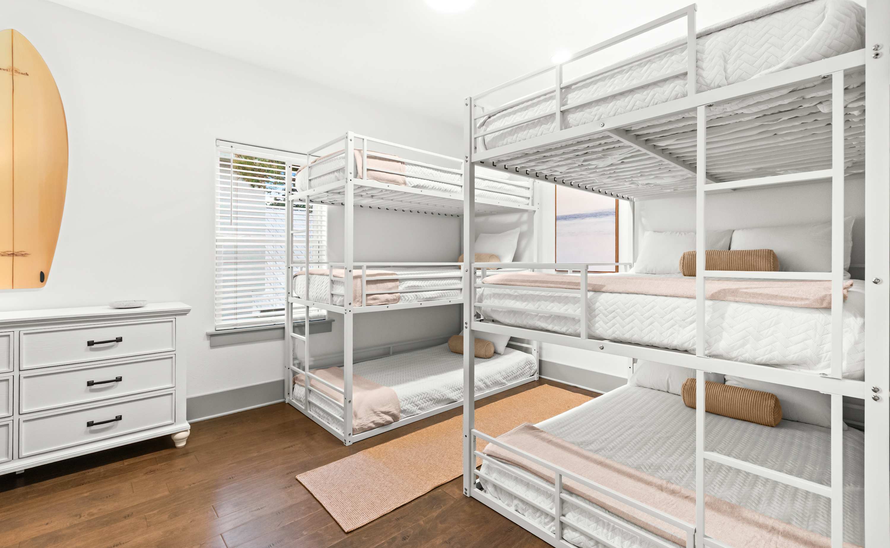 Stay in this Miramar Beach home that sleeps 15 with 4 bathrooms and parking for 4 vehicles, located in the gated community of Frangista Beach with deeded beach access and a community pool, just a 5-minute walk or quick ride in the included 6-seat golf cart to the beach. The home offers two king suites, another king bedroom, and a bunk room that sleeps 9 with its own bath, plus a game room and open living spaces, minutes from dining and shopping on Scenic Hwy 98.