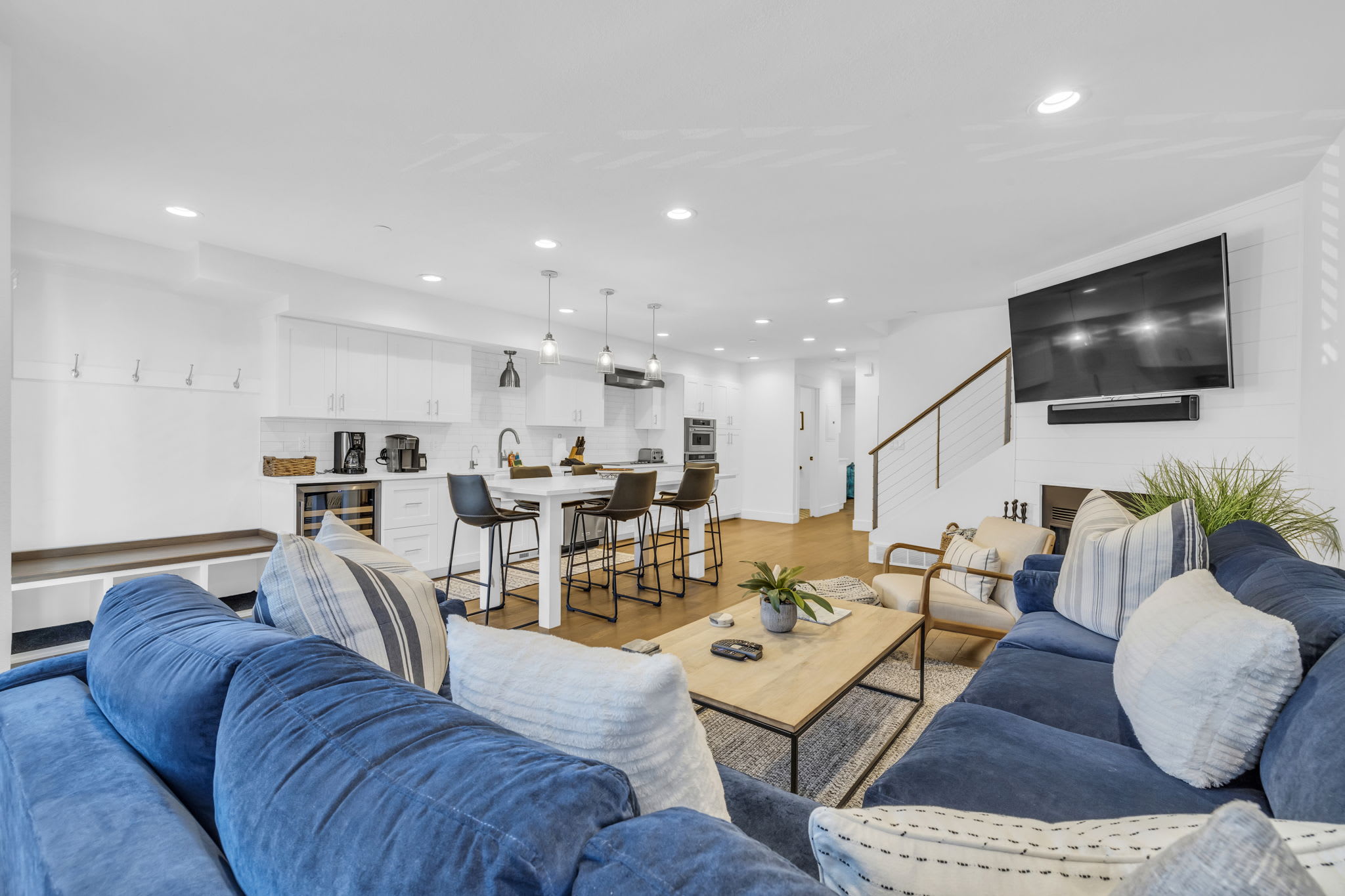 Location Perks: Park City Mountain Resort (0.4 miles), Main Street (0.7 miles), Deer Valley Resort (2.0 miles), Canyons Village (4.3 miles), Jordanelle State Park (8.8 miles) Interior: - Fully equipped kitchen (drip coffee maker, Keurig, wine fridge, blender, cooking utensils, tableware) - 5 Smart TVs w/ cable (65” in the living room) - Sonos sound system (living room) - 2 Wood-burning fireplaces - Free WiFi - Central heating - 1,642 sq. ft. Exterior: - Balcony - Shared hot tub (Available during winter months only) - On-site parking for 1 vehicle (garage, 6’5” clearance height) Upper Floor: 3 bedrooms, 1 en-suite bathroom Main Floor: Kitchen, dining room, living room, mud room, 1 bedroom, 1 bathroom Step into this modern Park City condo, ideally located just steps from Park City Mountain Lodge and a short walk from Main Street. The living room offers a warm retreat with a wood-burning fireplace and an immersive Sonos sound system, ideal for relaxing after a day of mountain adventures. The fully equipped kitchen—with top-of-the-line appliances—makes meal prep easy, while the dining area seats six comfortably. After a day on the slopes, you can unwind on the private balcony with mountain views or in the shared hot tub. Recharge in the beautifully appointed bedrooms, each designed for comfort and privacy. Upstairs, the primary suite provides a serene escape with a king bed, fireplace, 55” Smart TV, en-suite bathroom, and private balcony access. Two additional queen bedrooms feature Smart TVs and ample closet space. The fourth bedroom on the main floor includes two full beds and its own Smart TV, perfect for families or groups. With 2.5 modern bathrooms, including a spa-like master bath with a double-sink vanity and a large shower, everyone can relax in comfort.