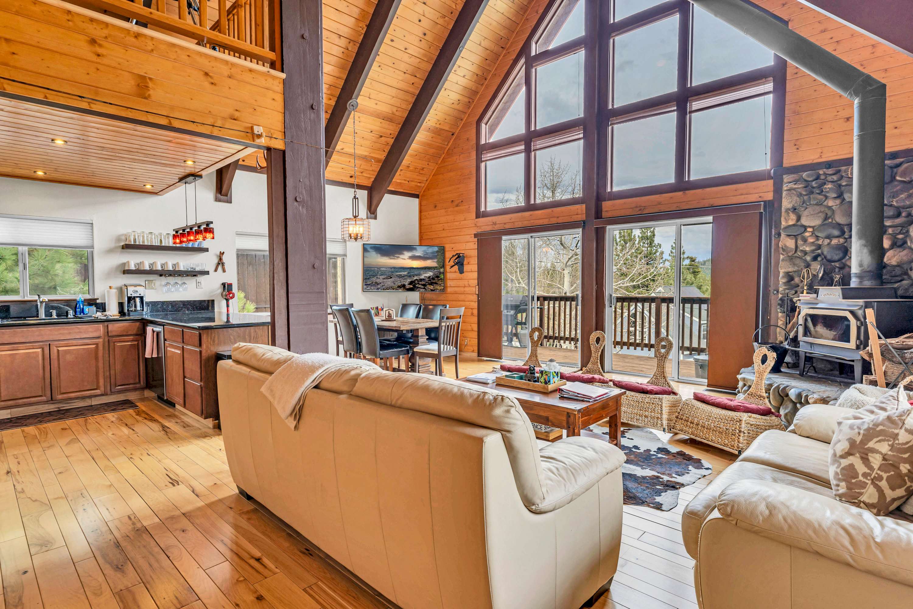 Located in the serene Tahoe Donner community, guests enjoy nearby ski slopes, hiking trails, Donner Lake adventures, and downtown Truckee’s charming shops and restaurants. Truckee offers year-round activities from paddleboarding to snowshoeing.