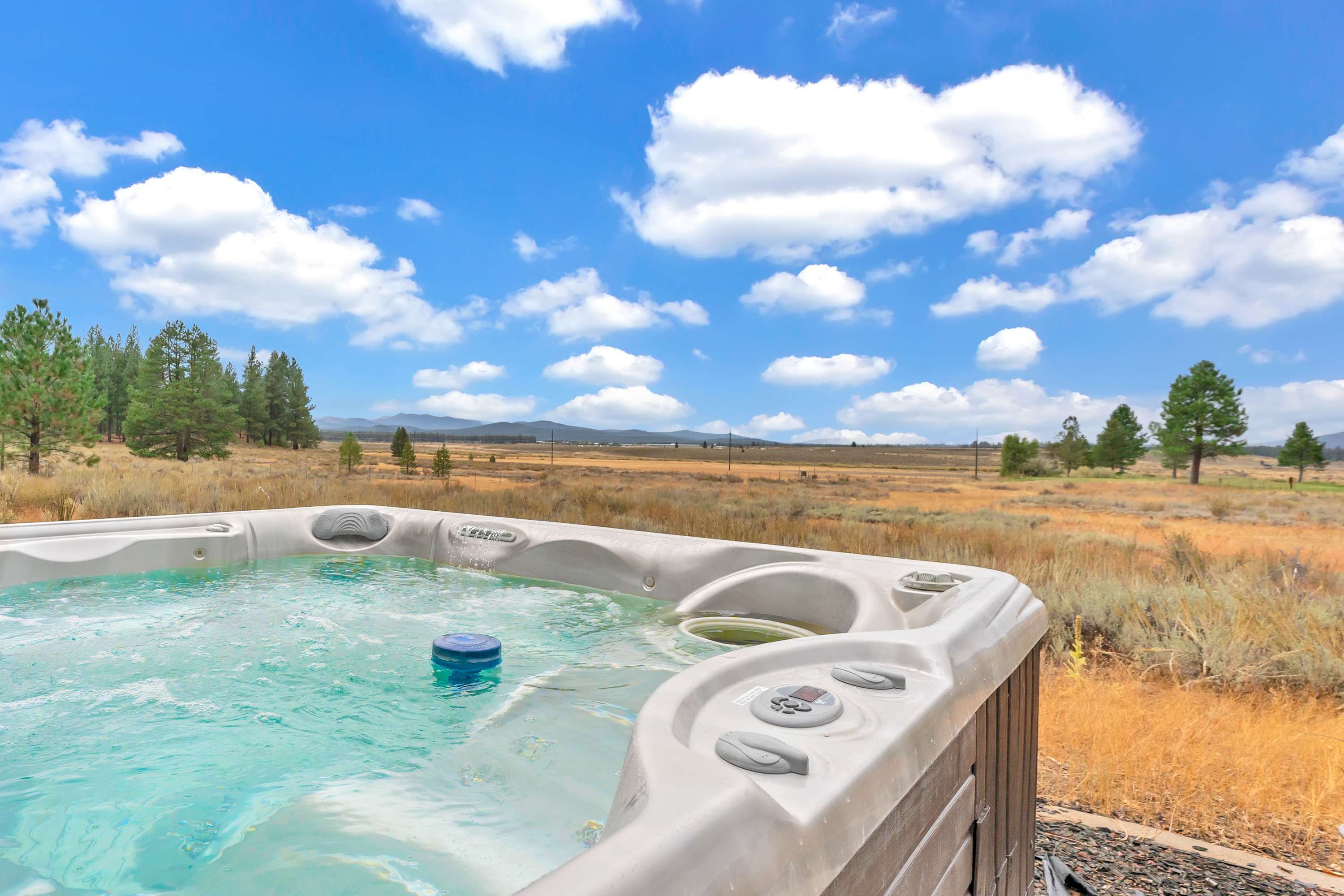 Location perks: Martis Valley Bike and Hiking Trail (accessible from back door), Northstar Golf Course (0.4 miles, located on the 9th hole), Northstar Ski Resort (2.3 miles), Truckee (7.5 miles), Lake Tahoe (Kings Beach) (8.1 miles), Palisades Tahoe (18.6 miles) Interior: - Well-equipped kitchen (double oven, drip coffee maker, and Espresso machine) - 6 Smart TVs (75” in bonus room and bunk room) - High-Speed Wi-Fi (342 Mbps) - Sonos speaker system - Gas fireplace - Bonus room w/ wet bar and shuffleboard - Washer/Dryer - Radiant heating, no A/C - 4,860 sq ft Exterior: - 6-person hot tub - Large outdoor patio - Outdoor dining - Balcony - Ping pong table (seasonal) - Located on Martis Valley Trailhead with views of Martis Valley Optional luxe add-on services (additional fees, please contact LocalVR to arrange): - Airport transfer - Chef/bartender - Grocery pre-stocking - Mid-stay clean Third Floor: 2 bedrooms, 1 shared bathroom Second Floor: Master bedroom w/ en-suite bathroom Ground Floor: Kitchen, living room, dining room, bonus room, 2 bedrooms, 1 en-suite bath, 1 shared bathroom, laundry room Step into luxury and tranquility at this stunning 4,860 sq. ft. Northstar retreat, where breathtaking views of Martis Valley stretch before you. As you enter the spacious living room, a warm gas fireplace, cozy seating, and walls of windows bathe the space in natural light, perfectly framing the picturesque valley. Just off the living room, the game room beckons with a 75” Smart TV, shuffleboard, and a wet bar—ideal for lively gatherings after a day of adventure. The well-equipped kitchen, a chef’s delight, features a drip coffee maker, espresso machine, and bar seating, leading to a formal dining room with seating for 9. Outside, the outdoor entertainment area awaits—a true mountain sanctuary where you can unwind in the 6-person hot tub, enjoy dinner under the stars at the outdoor dining table, or cozy up around the multiple seating areas, surrounded by the sights and sounds of nature. The home’s thoughtful layout offers privacy and comfort for every guest. The ground floor is home to 2 bedrooms: a playful bunk room with a twin-over-full bunk bed, a twin-over-twin bunk bed, and a peaceful California King bed, both ideal for families or children. The entire second floor is dedicated to the luxurious master suite, a private retreat featuring a California King bed, a private balcony with sweeping valley and golf course views, and an indulgent jacuzzi tub in the en-suite bath. There’s even a separate office area, perfect for those working remotely. On the third floor, 2 additional queen bedrooms (one with a queen bed and another with a queen and twin bed) share a bathroom, providing comfort and seclusion for extra guests. With high-speed Wi-Fi, 6 Smart TVs, a Sonos speaker system, and radiant heating throughout, this home blends mountain charm with modern convenience. Located just 2.3 miles from Northstar Ski Resort and a short drive to Truckee and the shores of Lake Tahoe in Kings Beach, this property offers the perfect balance of adventure, relaxation, and privacy. STR Permit Number: STR22-5300 Max Occupancy: 12 Parking Info: There are 4 spaces available on the driveway and 1 car space in the garage, accessible from the large garage door. Garage height is 8 feet.