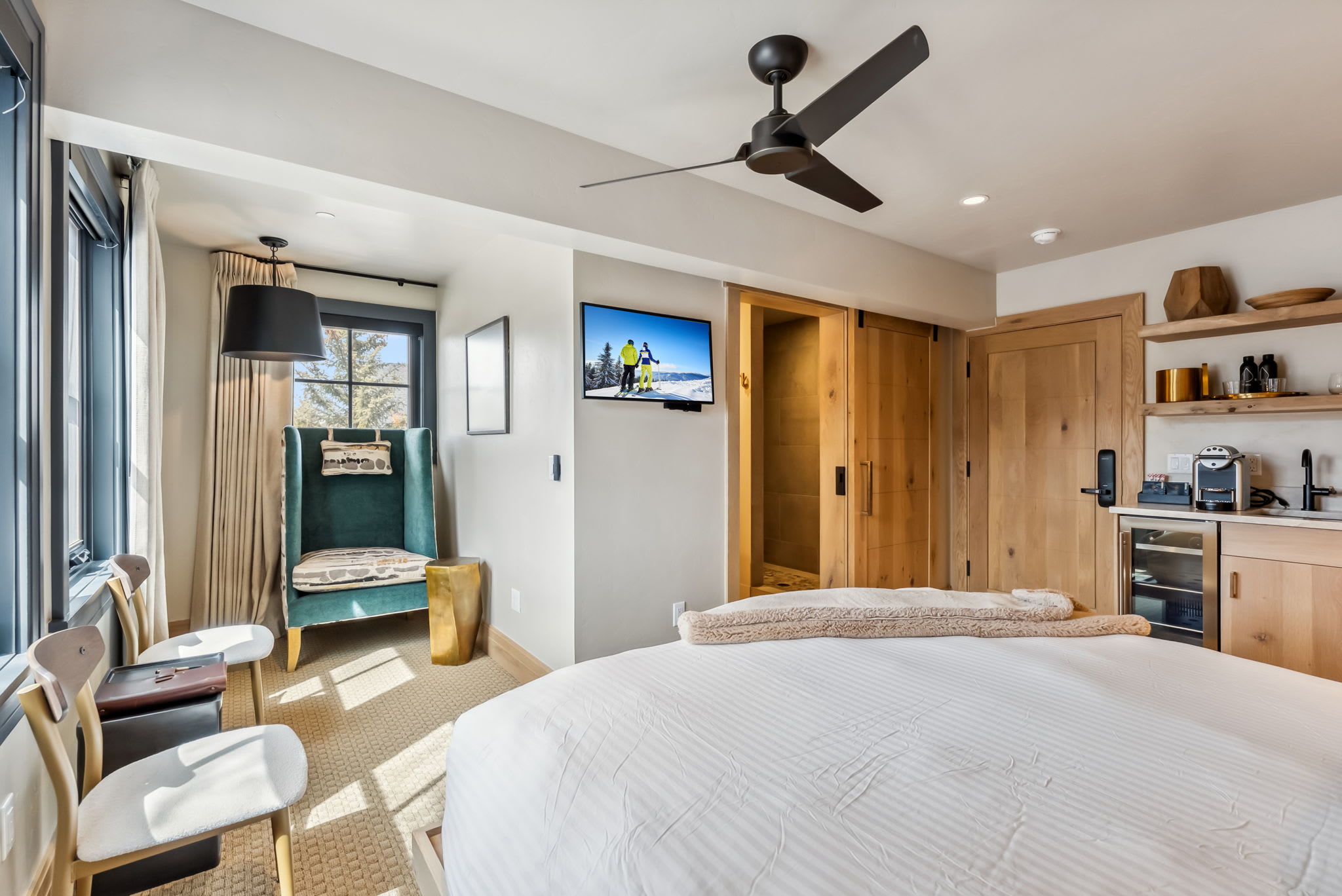 Guests have exclusive access to the entire suite. On-site amenities include a curated honor bar, ski storage lockers, yoga mats, & day backpacks for your adventures. Exclusive reservation access is available for The Carlin Restaurant & the Tavern Underground on-site.