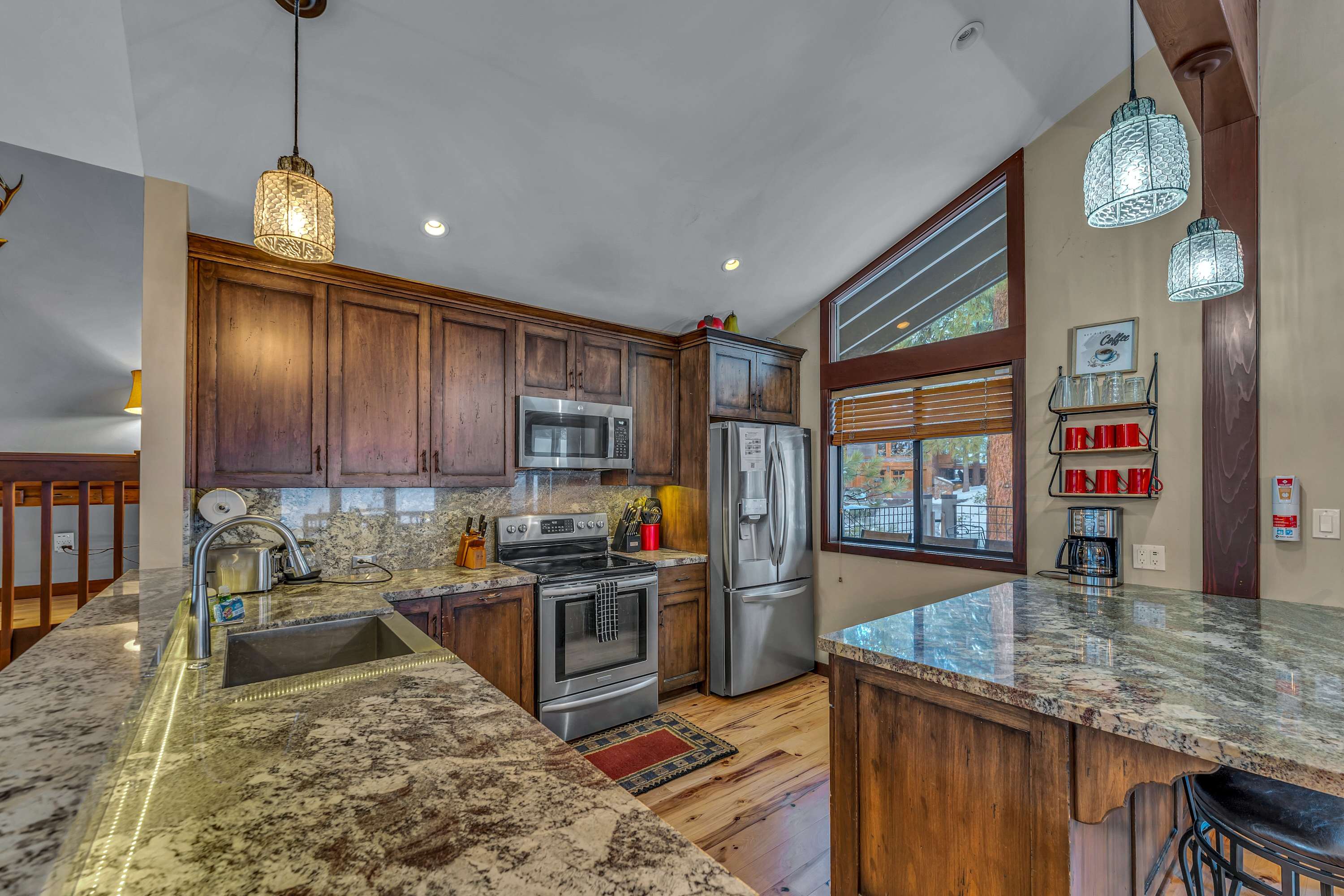 Location perks: Northstar Village (0.5 miles), Historic Downtown Truckee (7 miles), Kings Beach (7.5 miles), Palisades Tahoe (15 miles), Lake Tahoe (15 miles), South Lake Tahoe (34 miles) Inside the Home – Spacious living areas – Two inviting living rooms, each with Smart TVs, fireplaces, and comfortable seating – Fully equipped kitchen – Modern cabinetry, ample counter space, and everything you need for family meals – Dedicated workspaces – Perfect for remote work or planning your next adventure – Comfortable sleeping arrangements – Three bedrooms with king beds, one bedroom with two twin beds, plus a sleeper sofa in the living room, comfortably accommodating up to 10 guests – Forced air heating – Keeps the home warm in the winter – Whole house fan – Helps keep the home cool during summer months – Free high-speed WiFi – Stay connected throughout your stay Outdoor Spaces and Resort Perks – Multiple decks with outdoor dining – Spacious decks with BBQ (Available during the summer months) and seating, perfect for meals outdoors – Ground-level patio – A separate patio area with additional seating for relaxation – Private hot tub and sauna – Unwind after a day of adventure in your own hot tub and sauna – Ski and gear storage – Convenient space to keep your equipment organized – Horseshoe pit – Enjoy a friendly game while soaking in the outdoor atmosphere Northstar Resort and Nearby Attractions – Ski and snowboard in winter, bike in summer – Northstar offers world-class skiing and snowboarding in the winter and downhill mountain biking in the summer – Hiking and biking trails – Explore scenic trails throughout the resort and surrounding areas – Free shuttle service – Direct pickup from your driveway to Northstar Village for skiing, dining, and shopping – Northstar Clubhouse access – Amenities include a lap pool, spas, fitness center, and game room. Weather-permitting outdoor activities include main pool, kiddie pool, splash pad, Bear Hut, pickleball courts, tennis courts, bocce ball court, basketball court, nature trail, and playground – Dine at the Ritz-Carlton – Take the free gondola up for a memorable meal – Nearby ski resorts – In addition to Northstar, Palisades Tahoe, Tahoe Donner, and other ski destinations are just a short drive away – Explore historic downtown Truckee – Just 10 minutes away, Truckee offers charming shops, fantastic restaurants, art galleries, and a rich Old West history – Lake Tahoe adventures – Kings Beach is 15 minutes away, while a scenic drive around the lake to South Lake Tahoe’s casinos takes about 50 minutes, weather permitting Essential Details Maximum occupancy – 10 guests Parking – Six spaces (two in the garage, four in the driveway) Cooling and heating – Like typical homes in the area, this home does not have air conditioning, but the whole house fan helps keep it cool in the summer. Forced air heating keeps it warm in winter Winter travel advisory – Four-wheel drive or snow chains may be required, even if it hasn’t snowed recently STR License # – STR22-6095 Whether you're looking for an active getaway or a peaceful retreat, The Lazy Bear/Northstar Resort Truckee, CA, offers the perfect blend of comfort, adventure, and relaxation in the heart of Northstar.