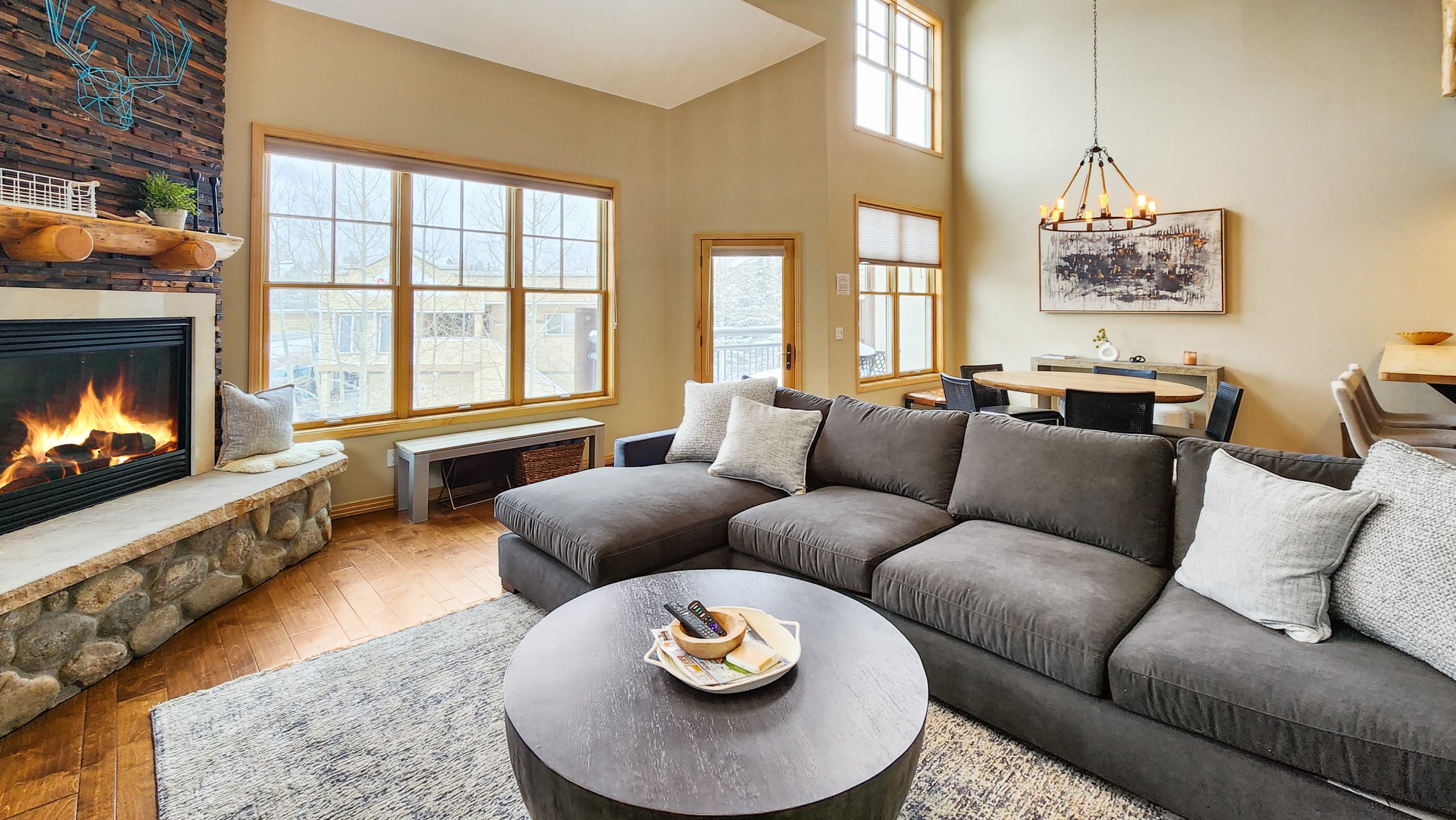 Bring the whole gang and enjoy your stay in an unbeatable location just steps to Main St! This newly-renovated condo accommodates up to 9 guests and is a short stroll to the Village and S. Main St. Cozy up around the fireplace in our spacious living room or enjoy morning coffee on the deck. You will have access to the condo’s large hot tub, workout room, and the clubhouse with ping pong, pool table, foosball, and a big screen TV. Whether you stay in or go out, there's something for everyone!