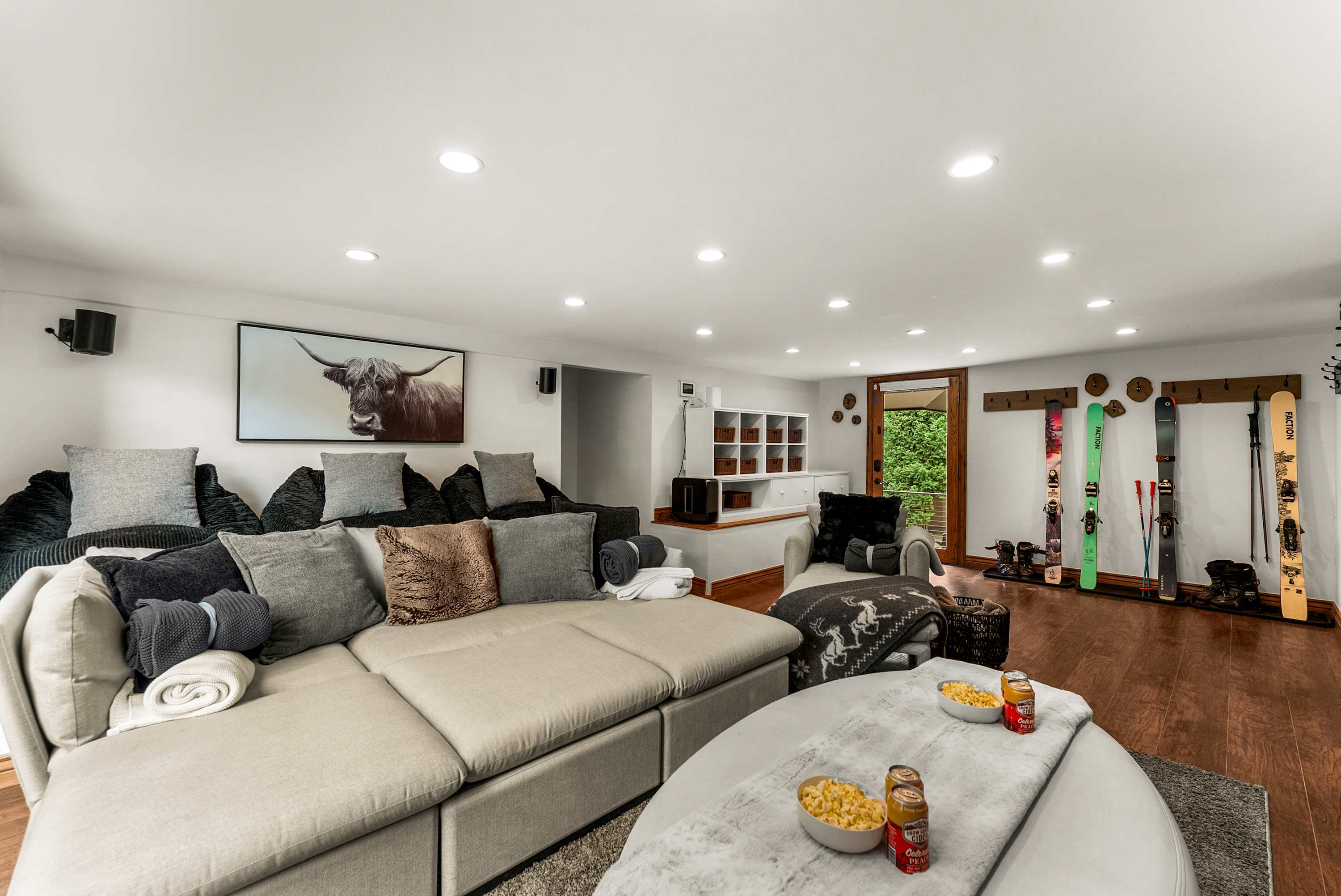 Location perks: Beaver Nottingham Park (1.1 miles), Beaver Creek Resort (2.0 miles), Vail Ski Resort (7.8 miles), Eagle River (8.0 miles), Eagle County Regional Airport (29.1 miles) Inside our property, guests will find 3,487 square feet of luxury living space equipped with central heat and high-speed 309 Mbps WiFi. The gourmet kitchen is fully equipped with Bosch appliances, a Keurig, a drip coffee maker, an air fryer, and a Crockpot. Entertainment options are endless with 10 Smart TVs throughout the home, including a massive 80-inch screen in the theater room, while two wood-burning fireplaces and a piano add warmth and character to the main living areas. For added convenience, the home also includes two sets of washers and dryers and dedicated boot warmers. The exterior of our property serves as a private mountain oasis, featuring an 8-person hot tub, a gas grill, and a private bridge that crosses the rushing Stone Creek. Guests can relax in the various outdoor seating areas, dine at the 4-person outdoor table, or gather around the outdoor gas fireplace on the patio. Access to a half basketball court and pickle ball set up in the driveway. A private gym is accessible from the side of the home, offering free weights and a professional racing simulator hooked up to an Xbox One. Ample on-site parking is provided for up to 8 vehicles. The community is packed with premium amenities, including the EagleVail Golf Club’s 18-hole championship course and the Willow Creek Par 3. In the summer, guests can enjoy the community swimming pool, tennis and pickleball courts, sports fields, and several pocket parks. The area is a haven for outdoor enthusiasts, featuring an extensive trail system for hiking and biking that connects to Beaver Creek and Meadow Mountain. Nearby waters provide excellent opportunities for fishing, whitewater rafting, and kayaking, while the winter months transform the golf course into a scenic Nordic track for cross-country skiing and snowshoeing. Interior: — Kitchen (Bosch appliances, Keurig, air fryer, Crockpot, blender, kettle, toaster oven, cooking utensils, tableware) — 9 Smart TVs (80", 65", 55", 45", and 42") with streaming — Sonos surround sound system — 2 wood-burning fireplaces — Private fitness center with free weights — Home theater with Xbox One and racing simulator — Office with dedicated working space — Piano — 2 sets of washers and dryers — Free WiFi (309 Mbps) — Central heat and no A/C — 3,487 sq. ft. Exterior: — Private 8-person hot tub — Gas grill — Seasonal creek on-property — 2 outdoor gas fireplaces — Bridge and private backyard — Basketball hoop — On-site parking for 10 vehicles in driveway Main floor: Kitchen, dining area, living room, theater room, half bathroom, laundry, deck access Upper floor: 1 bedroom (king bed) with deck access, 1 bedroom (twin-over-queen bunk bed), 1 bedroom (2 sets of triple twin bunk beds), office/dedicated workspace with sleeper sofa, 1 en-suite bathroom, 1 full bathroom Lower floor: 1 bedroom (queen-over-queen bunk bed), 1 en-suite bathroom, 2 bedrooms (queen beds), 1 full bathroom, kitchen, laundry